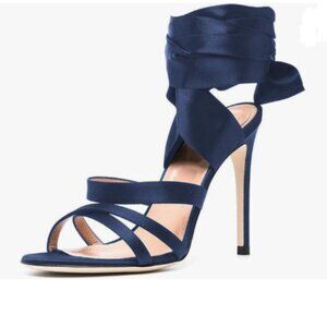 FSJ Blue High Heels Sandals Straps Open Toe Slingback Ankle Strap Shoes