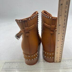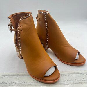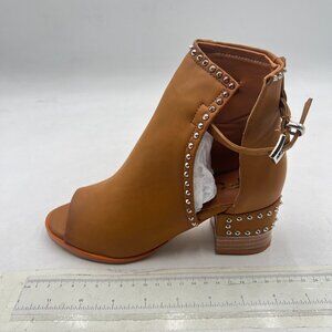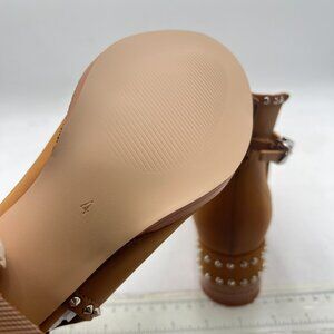 FSJ Brown Rivets Peep Open Toe Cut Out Buckle Ankle Bootie Block Low Heel Sandal