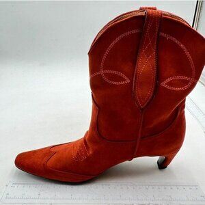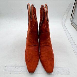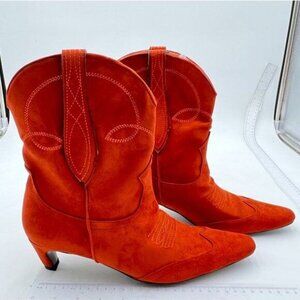 FSJ Brown Square Toe Comfort Kitten Low Heel Ankle Boot Pull On Bootie Winter Cowgirl Cowboy Dress Shoes