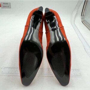 FSJ Brown Square Toe Comfort Kitten Low Heel Ankle Boot Pull On Dress Bootie