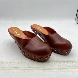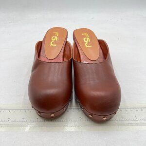 FSJ Burgundy Closed Toe Mules Wooden Kitten Heel Trendy Studded Slide Sandals