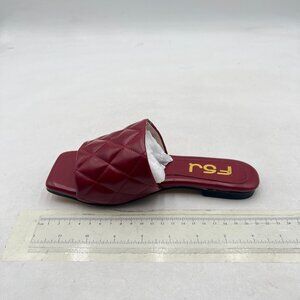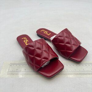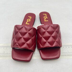 FSJ Burgundy Open Square Toe Slide Sandals Slip on Slipper Flat Office Date Shoe