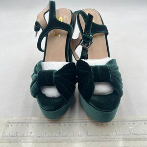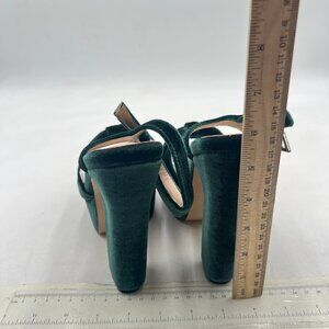 FSJ Dark Green Velvet Platform Chunky High Heel Sandal Peep Toe Ankle Strap Shoe