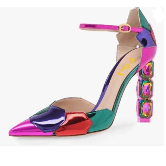 FSJ Fuchsia Crystal Heel Colorful Sandals Pointed Toe High Heel Ankle Strap Buckle Party Prom Dress Ladies Shoes