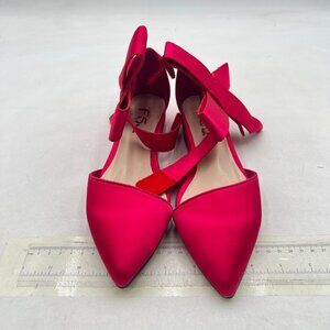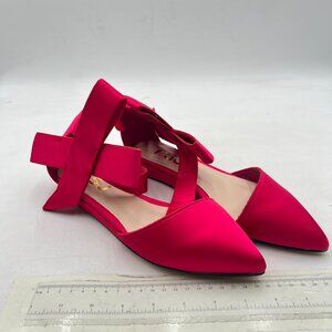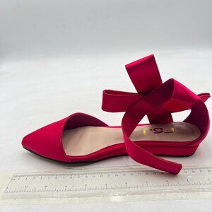 FSJ Fuchsia Pointed Toe D'Orsay Ankle Strap Ballet Flats Large Side Bows Shoes