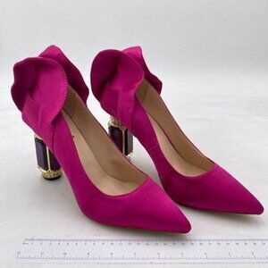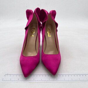 FSJ Fuchsia Graceful Satin Pumps Pointed Toe Crystal Chunky Block High Heels Slip On Curly Back Wedding Dress Evening Shoes