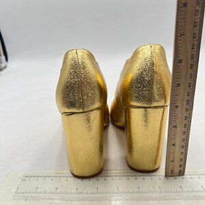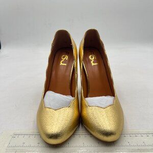 FSJ Gold Chunky High Heels Loafers Closed Toe Slip-on Pumps Elegant Comfort Shoe