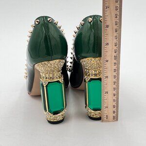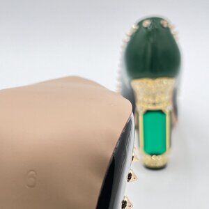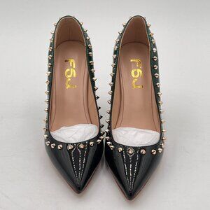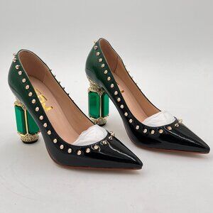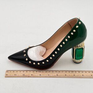 FSJ Green Bridal Pointed Toe Chunky High Heel Crystal Pumps Wedding Dress Shoes