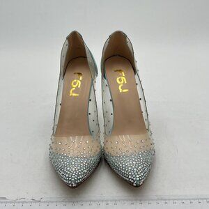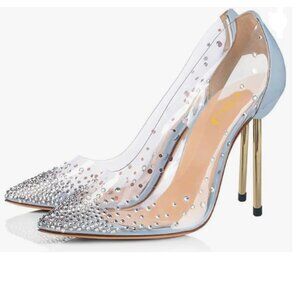 FSJ Light Blue Studded Pointed Toe Transparent Pumps High Heels Shoes