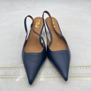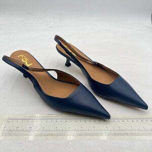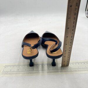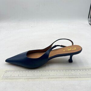Elegant navy blue slingback heels. Sleek pointed toe design. Perfect for any occasion.