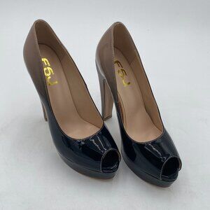 FSJ Nude Black Sexy Chunky High Heels Platform Pumps Peep Toe Slide Dress Shoes