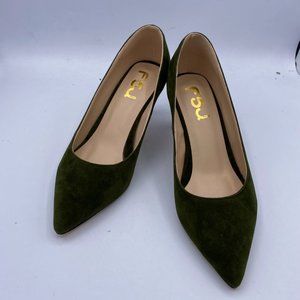 Elegant olive green suede heels. Pointed toe design. Perfect for any occasion. Color is so adorable! Height of heel is perfect for every day where, or for a night out on the town! I wish I could have wore these, but they are too small for me after having kids!