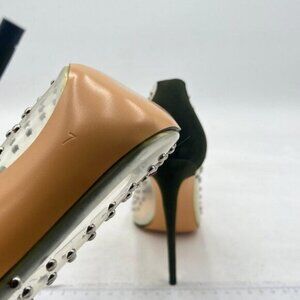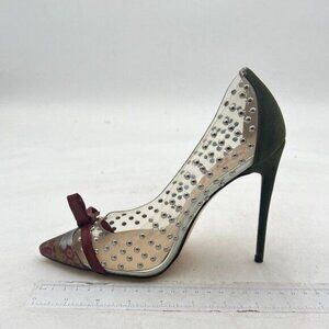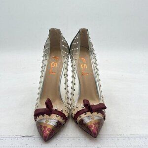 FSJ Olive Studded Pointed Toe Transparent Pump High Heels Shoe with Cute Bowknot