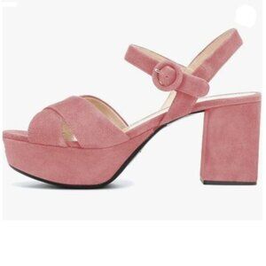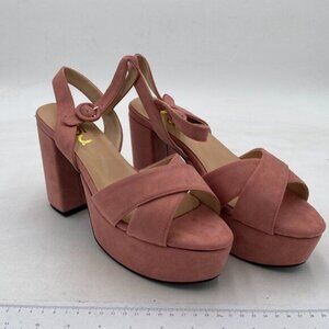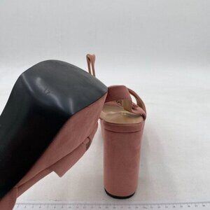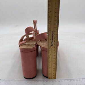 FSJ Pink Peep Toe Chunky High Heels Platform Sandals Ankle Strap Velvet Shoes