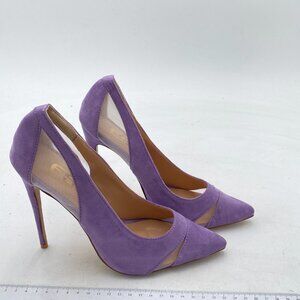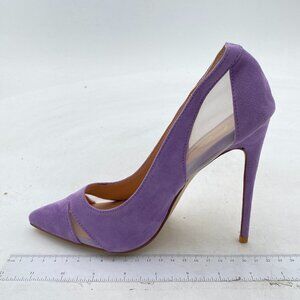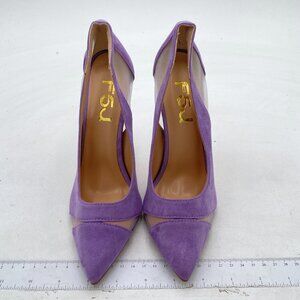 FSJ Purple Mesh High Heel Pump Pointed Toe Stiletto Thin Slip on Dress Prom Shoe