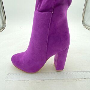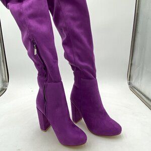 FSJ Purple Over The Knee Chunky High Heels Stretch Thigh High Zipper Long Boot Winter Warm Heel-height measurement: Approx. 4 inches Color: Purple condition: Like New with Box, box may damaged Size 9 shoes Features:Party shoe, dress shoe, Prom shoe, clean shoe soles, most comfortable heels for work, adding dressy style to prom, party or office, Stock No:21B 2-3 Note: As all women's shoes sizes can be different by brand/style. I have listed all of the measurements in the picture. :)