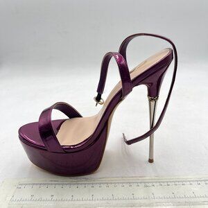 FSJ Purple Strappy Open Toe Platform Sandals Ankle Strap High Stiletto Heel Metallic Dress Party Shoes