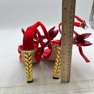 FSJ Red Flame Gold Metal Chain Thick High Heel Sandals Open Toe Strappy Shoes
