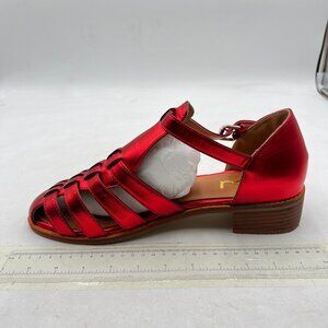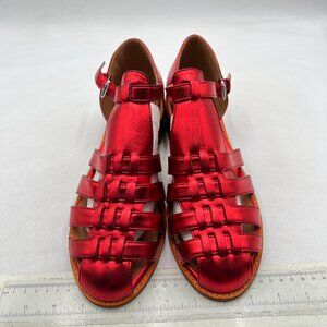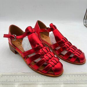 FSJ Red Retro Closed Toe Low Block Heel Woven Roman Ankle Strap Caged Sandals