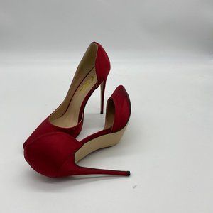 FSJ Red Satin Pointed Toe D'Orsay Stiletto Pumps