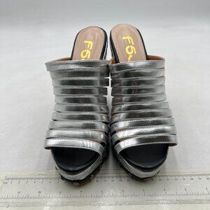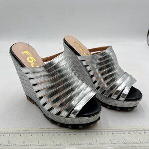 FSJ Silver Open Toe High Heel Mules Platform Clogs Slip On Studded Wedges Sandals Strappy Slide Casual Backless Slippers Shoes