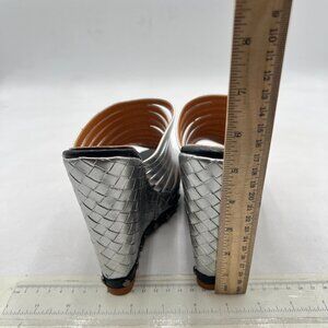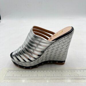 FSJ Silver Open Toe High Heel Mules Platform Clogs Slip On Studded Wedges Sandal