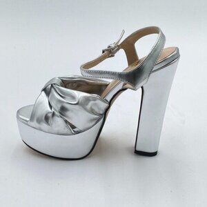 FSJ Silver Platform Chunky Block High Heel Sandals Peep Toe Ankle Strap Shoes