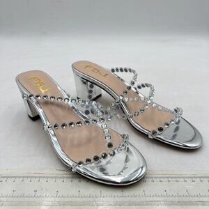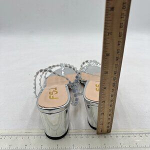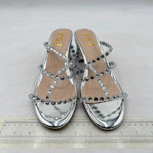 FSJ Silver Rhinestones Sandals Open Toe Block Heel Strappy Gladiator Sandal