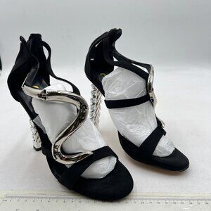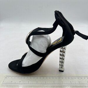 FSJ Silver S Metal Chain Chunky High Heels Ankle Strap Sandals Open Toe Shoes