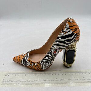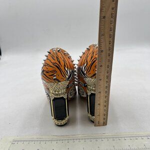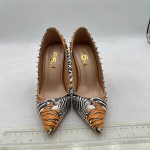 FSJ Tiger Bridal Pointed Toe High Heel Crystal Pumps Slip on Wedding Rivets Shoe