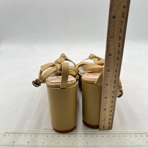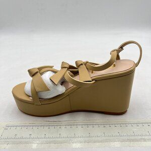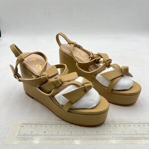 FSJ Wheat High Heels Platform Wedge Heel Open Toe Gladiator T Strap Bow Sandals