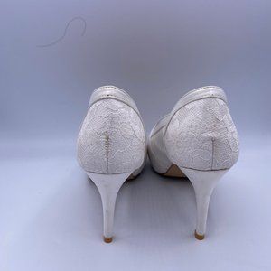 FSJ White Peep Toe Stilettos Heels Lace Wedding