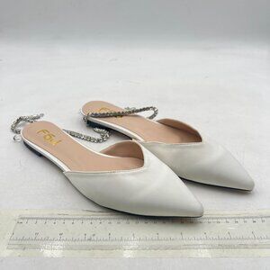 FSJ White Pointed Toe Ballet Flats Rhinestone Crystal Chain Ankle Strap Shoes