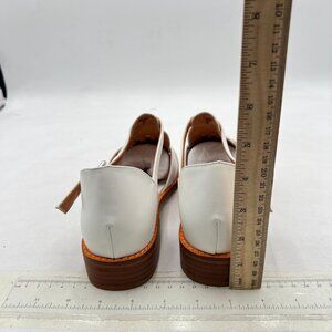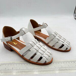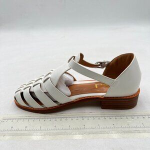 FSJ White Retro Closed Toe Low Block Heel Woven Roman Ankle Strap Caged Sandals