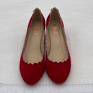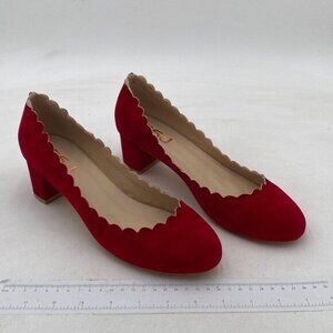 FSJ Wine Red Closed Almond Round Toe Pumps Block Chunky Mid Low Heel Shoes