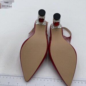 FSJ Women Closed Pointed Toe Crystal Block Chunky Mid Heel Slingback Pumps