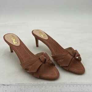 FSJ Women Cute Bowknot Slip On Mules Summer Open Toe Kitten Low Heel Sandal Ladies Casual Comfy Walking Dress Shoes