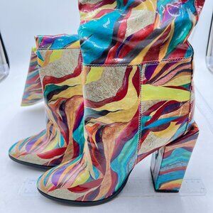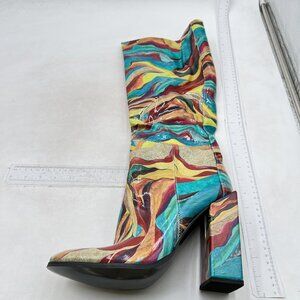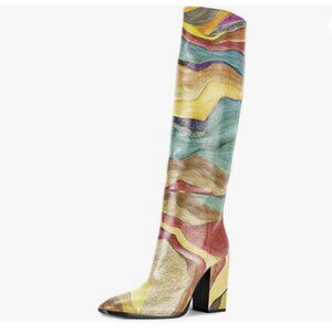 FSJ Women Fashion Knee High Stretch Long Boots Round Toe Block Chunky Heel Pull On Party Dress Shoes