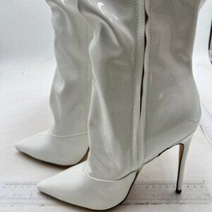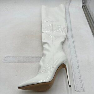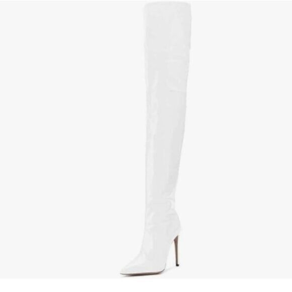 FSJ Women Fashion Pointed Toe Stiletto Heel Thigh High Over The Knee Boots White