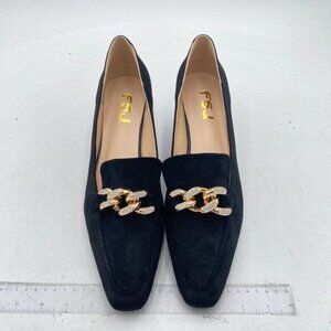 FSJ Women Kitten Low Heel Dressy Pumps Closed Pointed Toe Metal Rhinestone Chain Comfortable Slip On Office Work Wedding Shoes