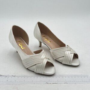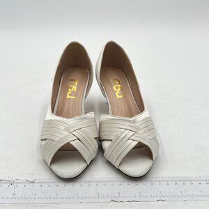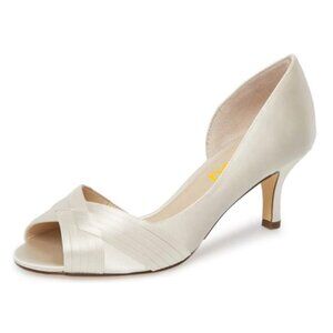 FSJ Women Low Kitten Heels Peep Toe Slip on Pumps D'Orsay Pleated Satin Sandals Evening Party Dress Comfy Office Shoes Heel-height measurement: Approx. 2 inches Color: Ivory condition: New with Box, box may damaged Size 6 shoes Features:Party shoe, dress shoe, Prom shoe, clean shoe soles, most comfortable heels for work, adding dressy style to prom, party or office, Stock No.23D 6-6