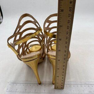 FSJ Women Peep Toe High Heel Bootie Pumps Stiletto Ankle Strap Heels Cutout Gold