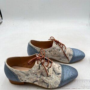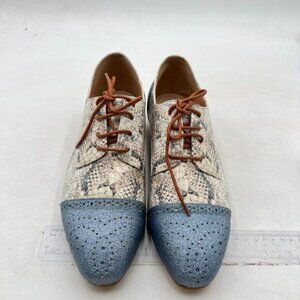 FSJ Women Perforated Lace-up Oxfords Multicolor Leather Cap Toe Flat Pumps Blue