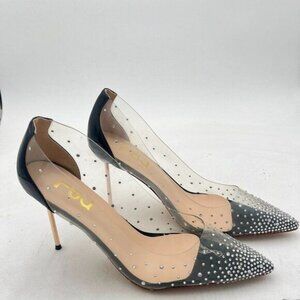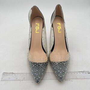 FSJ Women Studded Pointed Toe Transparent Pumps High Heels Shoes with Cute