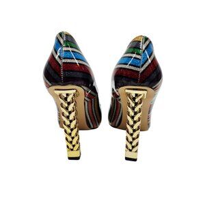 FSJ Womens Pointed Toe Chain Heel Striped Multicolor Pumps Size 8