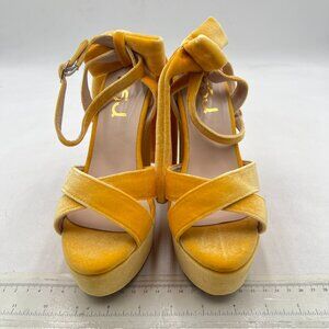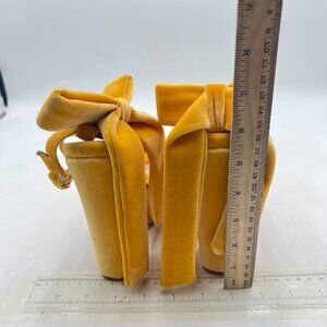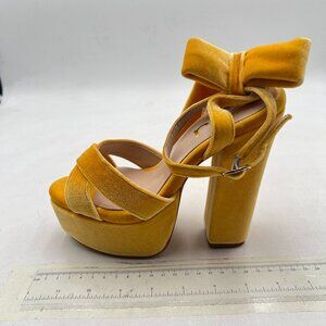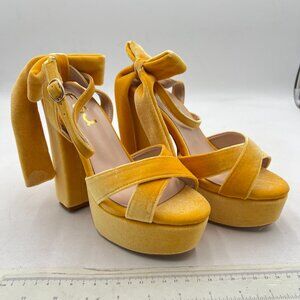 FSJ Yellow Platform Chunky High Heel Velvet Peep Toe Bowtie Ankle Strap Sandals