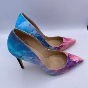 Slightly on the smaller size. I’m usually a 9 and these are snug. They are also narrow in the foot. Only worn once 🥰