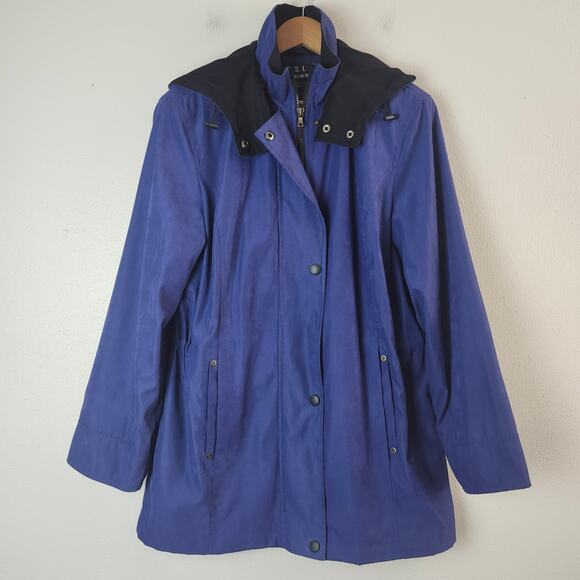 FSL Collection Women's Zip Up Detachable Hood Pockets Blue Lined Jacket Medium