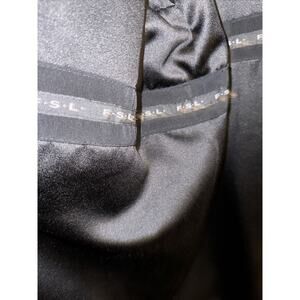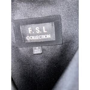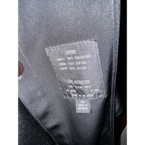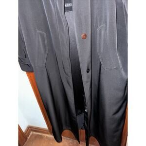 Elevate your style with this stunning FSL trench coat in size 18. The black cotton blend fabric is accented with buttons and a collar, making it perfect for any occasion, from casual to formal. The long coat features a single-breasted design, with pockets for added convenience.