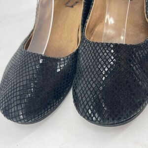 Metallic diamond snake like skin print low wedge